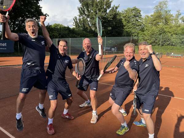 Ole, ole....der nächste Aufsteiger. Auch die Herren 50 treten nach einer überragenden Saison ungeschlagen den Weg in die Bezirksliga an. In zwei der knappen 5:4 Siege war die Nervenstärke und das Power Tennis von Kai und Roman der entscheidende Faktor im Doppel und beide Matches konnten im Champions Tie Break souverän ;-) gewonnen werden.