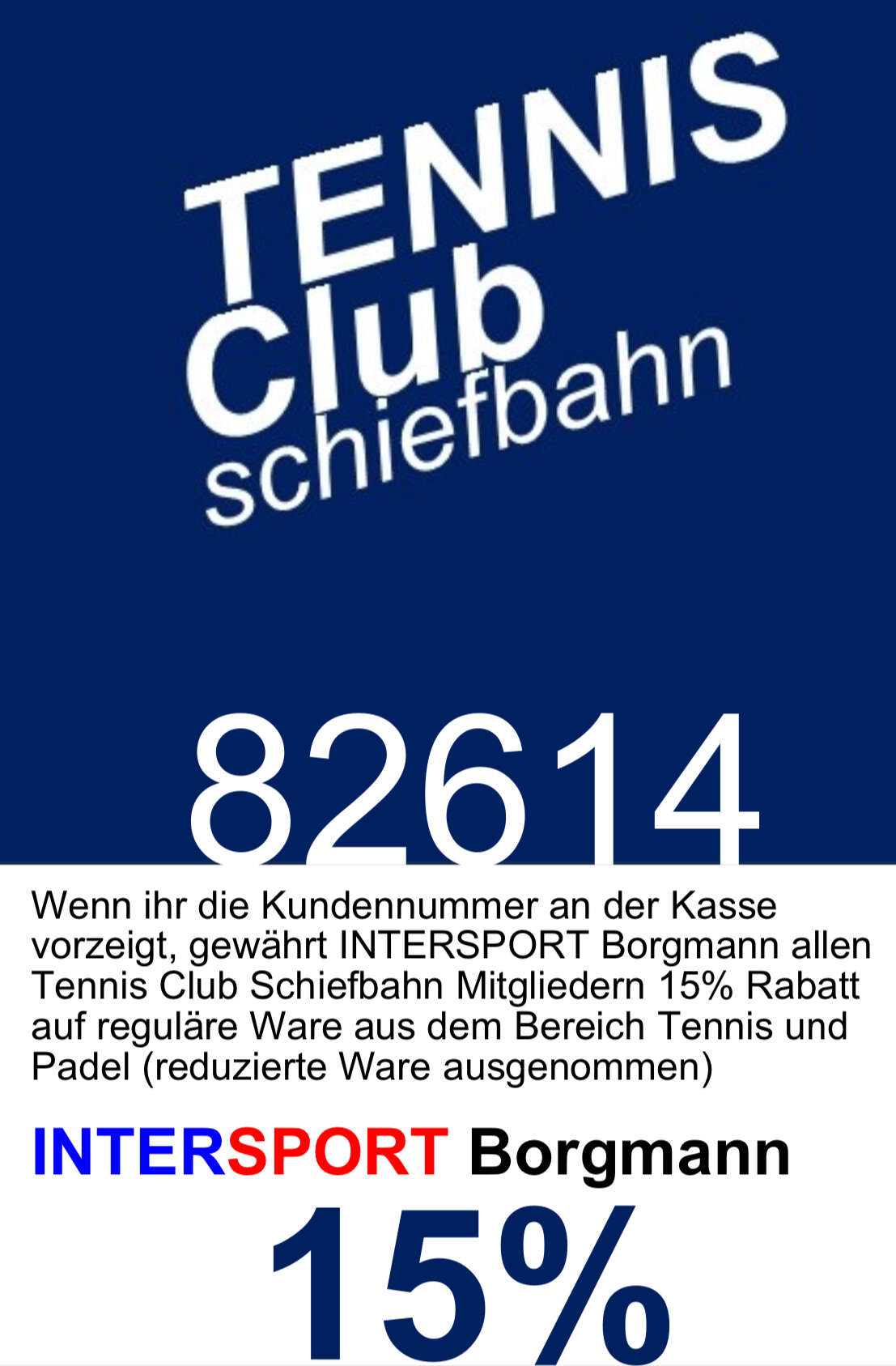 Und für alle, die noch für den Urlaub Sportausstattung vom Bikini bis zum Stand-Up Paddel benötigen, findet Ihr hier noch einmal unsere Intersport Borgmann Kundennummer, mit der Ihr bei vorzeigen an der Kasse 15% TCS Vorteilsrabatt erhaltet. Happy Holiday !