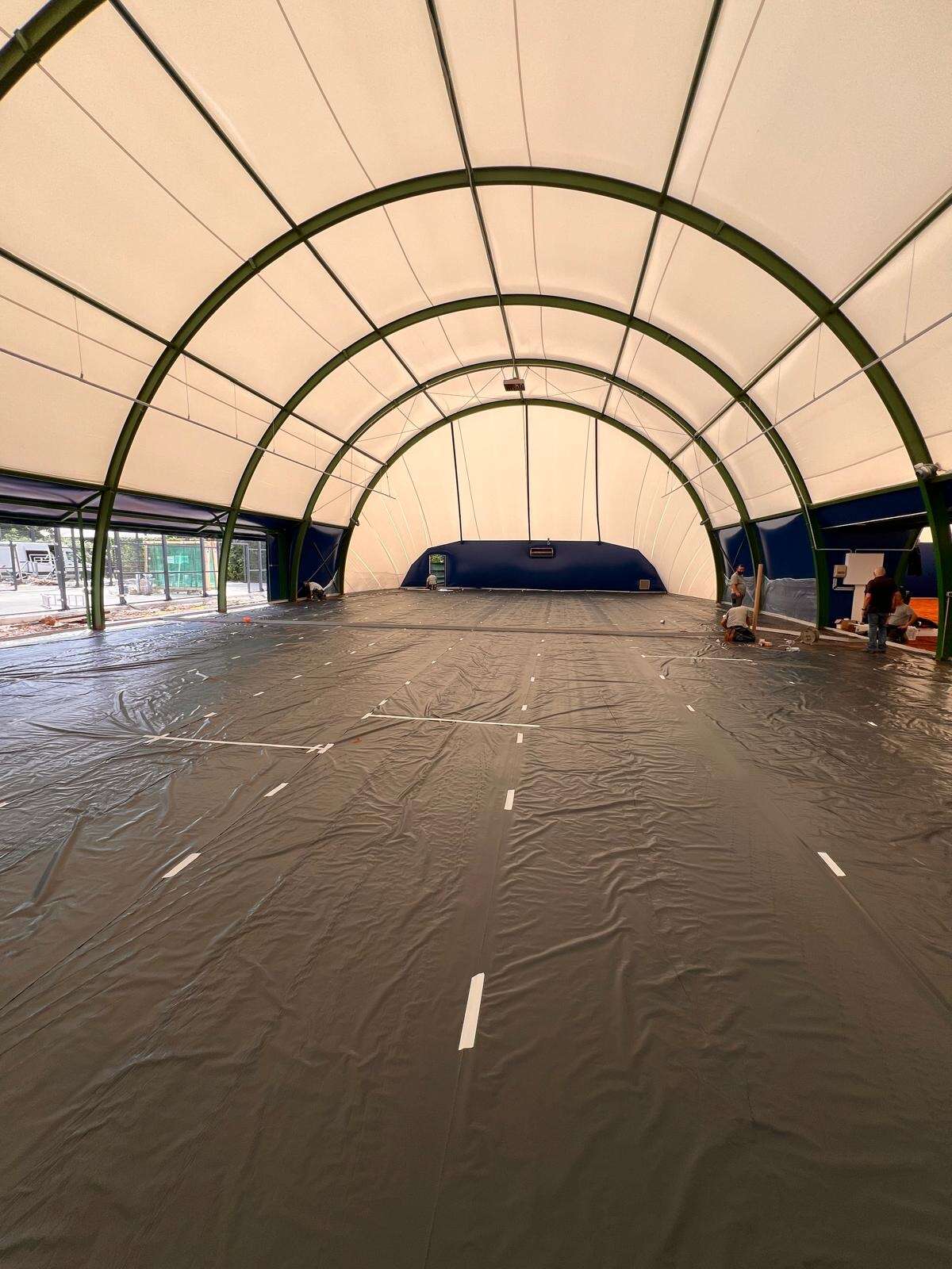 Die Plätze werden mit modularen Hardcourt-Platten ausgestattet – also einer