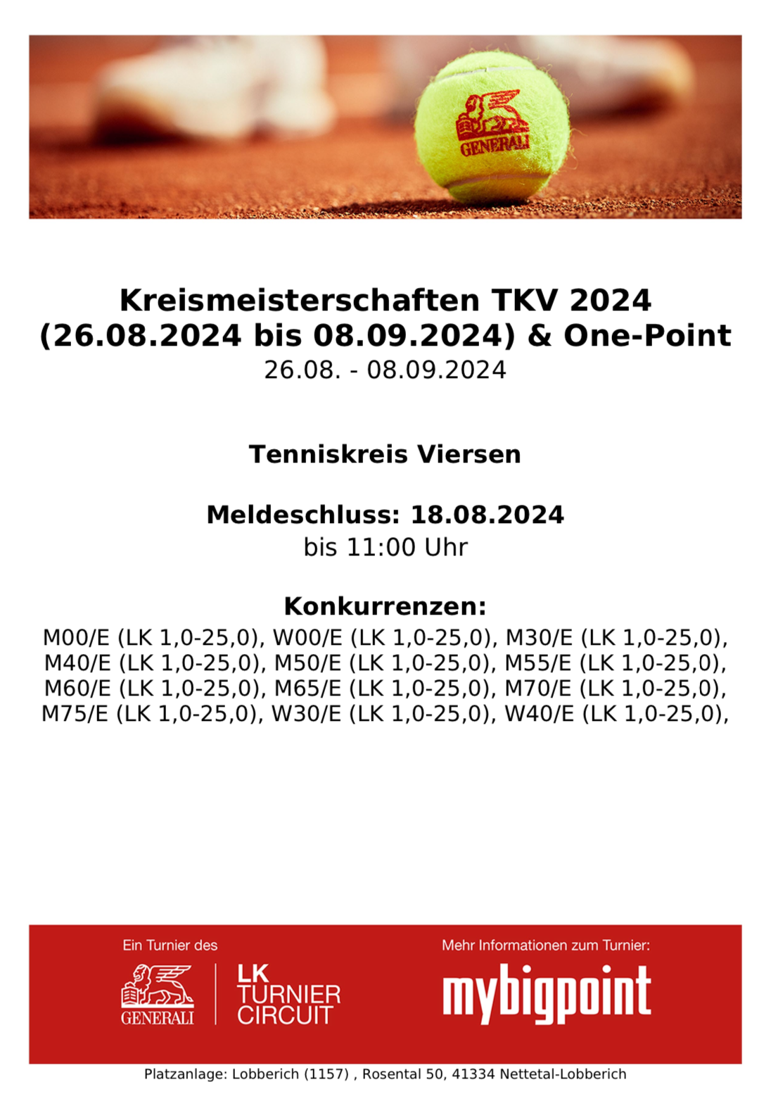 Die offiziellen Ausschreibungen der Kreismeisterschaften im Tenniskreis Viersen für die Senioren und für die Jugend findet ihr im PDF-Anhang.