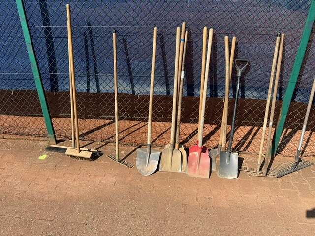 Nach dem unermüdlichen Einsatz heute, ist noch etwas Arbeitsmaterial am Platz. Wer vor lauter Erschöpfung Spaten, Harke oder ähnliches nicht mehr mitnehmen konnte, sollte vielleicht morgen mit neuen Kräften sein Material mitnehmen. Danke !