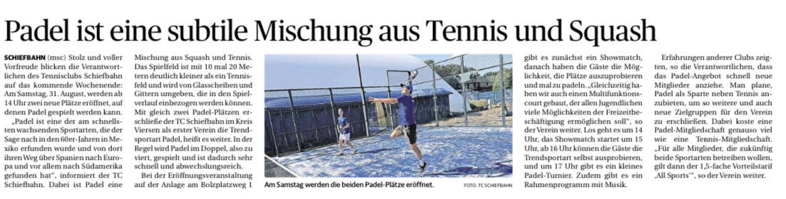 PADEL KOMMT NACH SCHIEFBAHN !